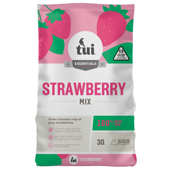 The great Kiwi pavlova just wouldn’t be the same without a generous topping of delicious red strawberries. Grow your own this season and you’ll be the family favourite! Tui Strawberry Mix is a high quality planting mix containing the right blend of nutrients to provide your strawberries with the best possible start and sustained growth throughout the season. We’ve added extra potassium to this mix – just what your strawberry plants need to encourage a plentiful harvest of big juicy fruit.